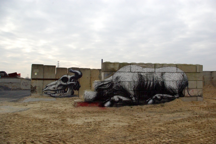 Eccovi di seguito una selezione di immagini che documentano il lavoro di ROA street artist che attualmente vive e lavora in Belgio. Immagino cosa può voler dire camminare per strada (anche se effettivamente i luoghi scelti non sono tra i più frequentati e accessibili) e all'ìmprovviso trovarsi di fronte uno di questi animali in formato gigante. Ne sarei contemporaneamente affascinata e inquietata. Voi?